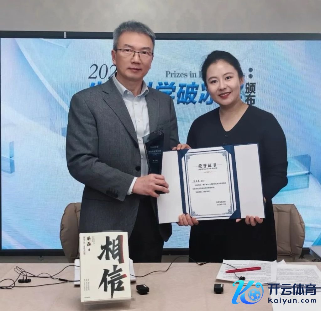 2024年12月30日,蔡磊和段睿为李龙承博士颁发人命科学破冰奖。