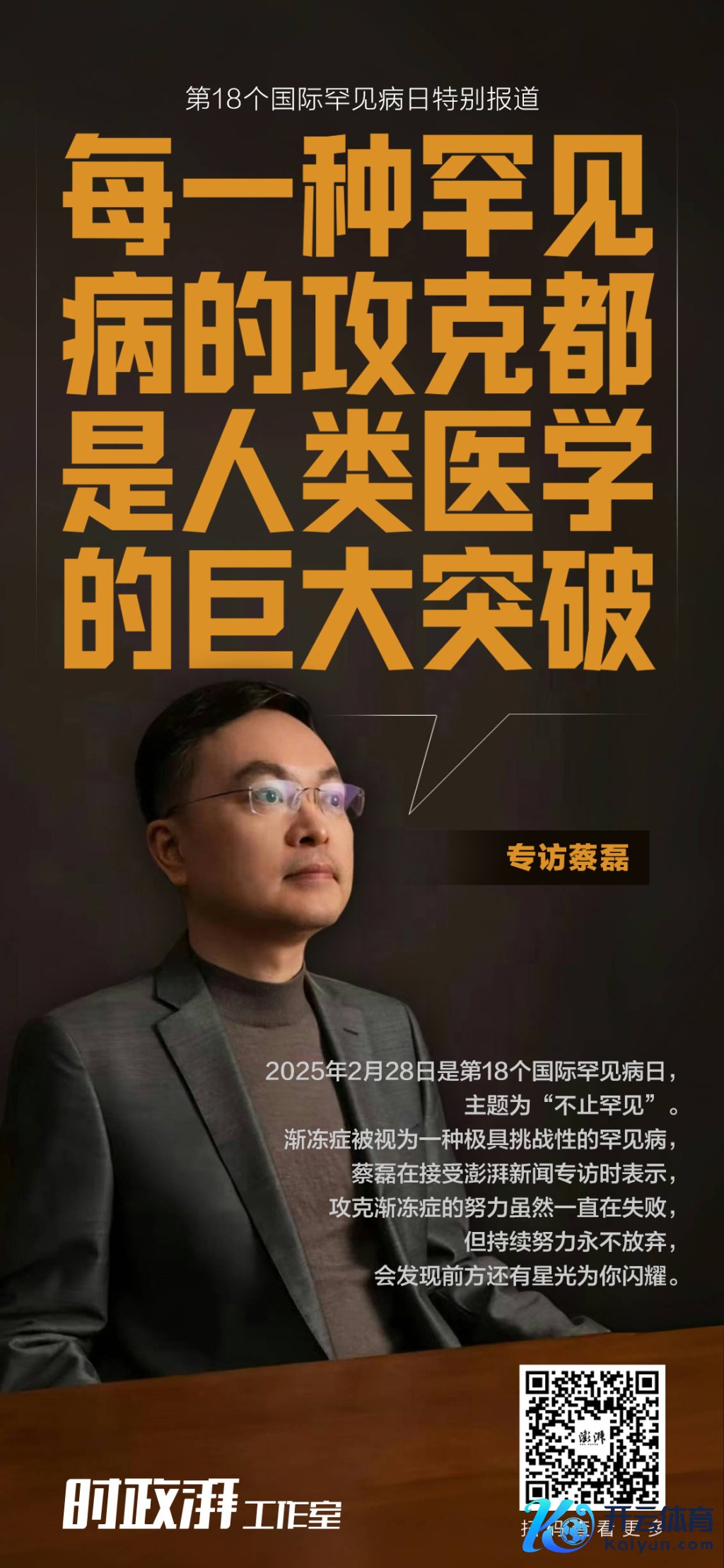 2025年2月28日是第18个海外荒僻病日。2025年,亦然蔡磊与“渐冻症”斗争的第六现金万博manbext体育官网app平台个年头。2019年,时任京东集团副总裁的蔡磊被确诊“渐冻症”,从交易精英到荒僻病患者,再到科研推动者,蔡磊的东谈主生轨迹因一场荒僻病而透彻更正。